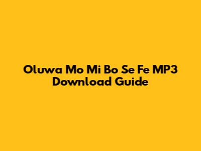 Oluwa Mo Mi Bo Se Fe: MP3 Download Guide
