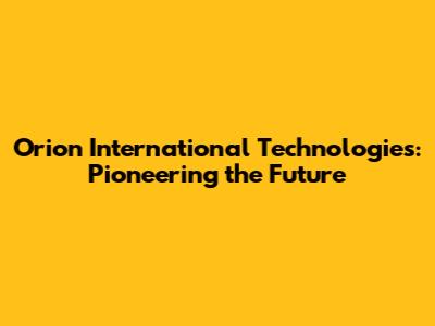 Unveiling Orion International Technologies