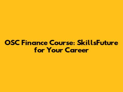 OSC Finance Course: SkillsFuture For Your Career