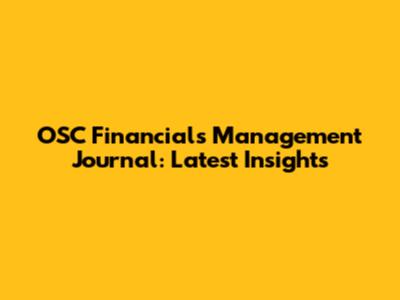 OSC Financials Management Journal: Latest Insights