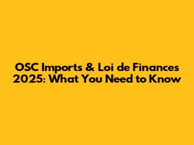 OSC Imports & Loi De Finances 2025: What You Need To Know