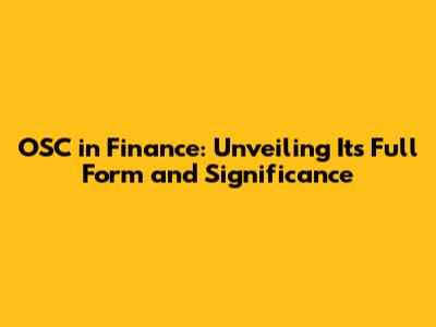 Understanding the Full Form of OSC in Finance