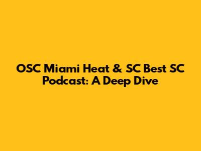 Hey guys, let's dive into something awesome! We're talking about the OSC Miami Heat & SC Best SC Podcast. If you're a fan of basketball, particularly the Miami Heat, and you love a good podcast, you're in for a treat. This article is your go-to guide, filled with insights, analysis, and everything you need to know about this dynamic duo of sports content. We'll break down what makes their podcast so popular, why it resonates with fans, and what you can expect when you tune in. Get ready to level up your sports knowledge and join the conversation!