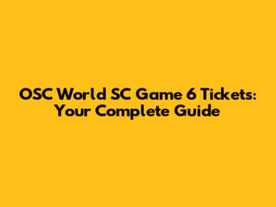 OSC World SC Game 6 Tickets: Your Complete Guide