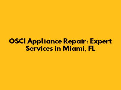 OSCI Appliance Repair: Expert Services In Miami, FL