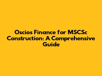 Oscios Finance For MSCSc Construction: A Comprehensive Guide