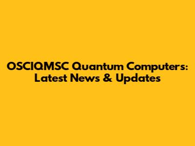 OSCIQMSC Quantum Computers: Latest News & Updates
