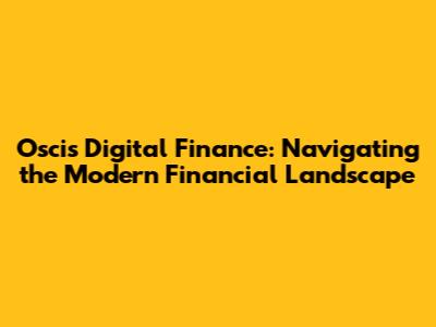 Oscis Digital Finance: Navigating The Modern Financial Landscape