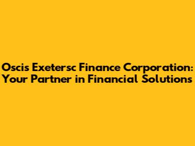 Oscis Exetersc Finance: Your Partner In Financial Solutions