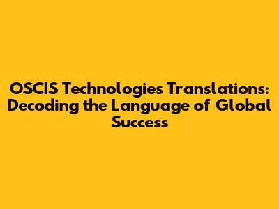 OSCIS Technologies: Decoding Global Translations