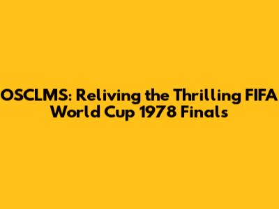 OSCLMS: Reliving The Thrilling FIFA World Cup 1978 Finals