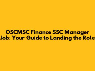 OSCMSC Finance SSC Manager Job: Your Guide To Landing The Role