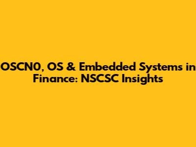 OSCN0, OS & Embedded Systems In Finance: NSCSC Insights