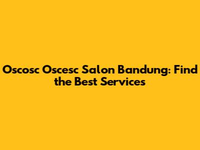 Oscosc Oscesc Salon Bandung: Find The Best Services