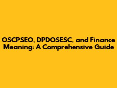 OSCPSEO, DPDOSESC, Finance Meaning: Explained