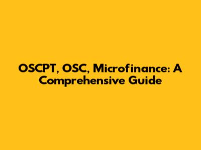 OSCPT, OSC, Microfinance: A Comprehensive Guide