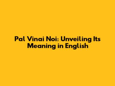 Pal Vinai Noi: Unveiling Its Meaning In English