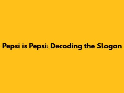 Pepsi Is Pepsi: Decoding The Slogan