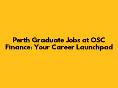 Perth Graduate Jobs At OSC Finance: Your Career Launchpad