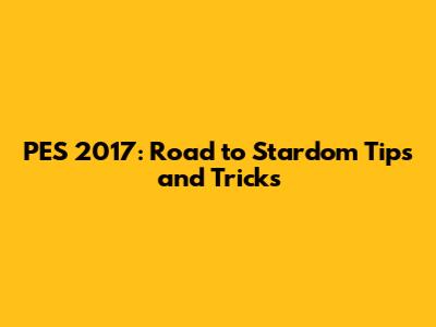 PES 2017: Road To Stardom Tips And Tricks