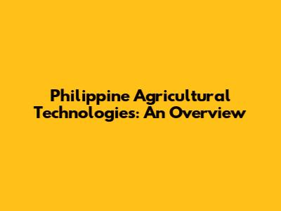 Philippine Agricultural Technologies: An Overview