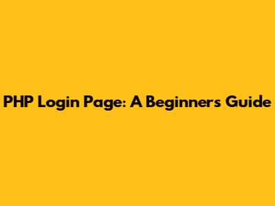 PHP Login Page: A Beginner's Guide