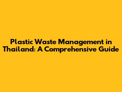 Plastic Waste Management In Thailand: A Comprehensive Guide
