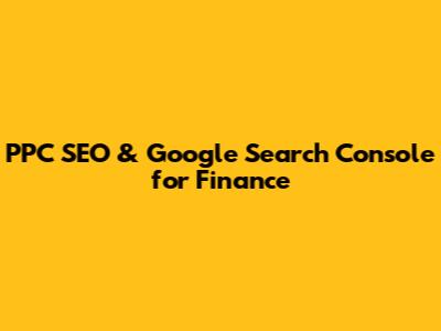 PPC SEO & Google Search Console For Finance