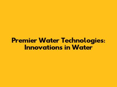 Premier Water Technologies: Innovations In Water