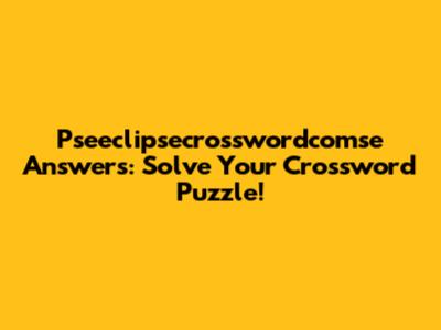 Pseeclipsecrosswordcomse Answers: Solve Your Crossword Puzzle!
