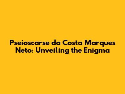 Pseioscarse Da Costa Marques Neto: A Deep Dive
