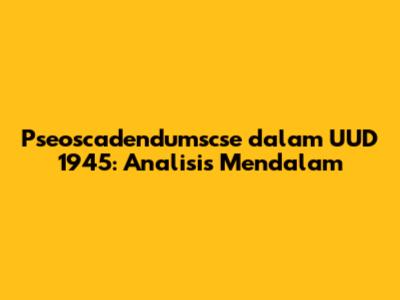 Pseoscadendumscse Dalam UUD 1945: Analisis Mendalam