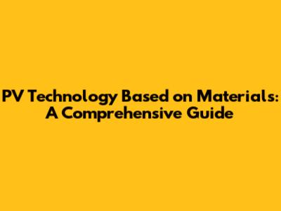PV Technology Based On Materials: A Comprehensive Guide