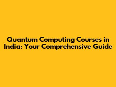 Quantum Computing Courses In India: Your Comprehensive Guide