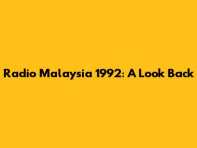 Radio Malaysia 1992: A Look Back