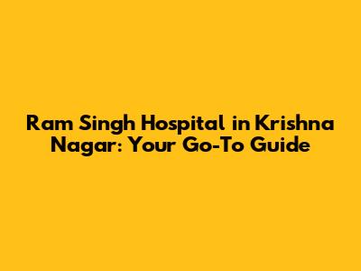 Ram Singh Hospital In Krishna Nagar: A Comprehensive Guide