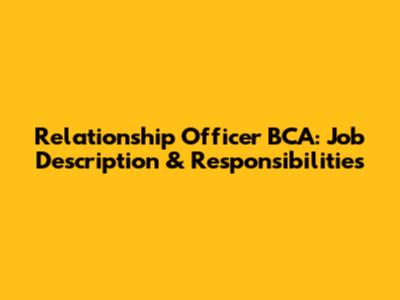 Relationship Officer BCA: Job Description & Responsibilities