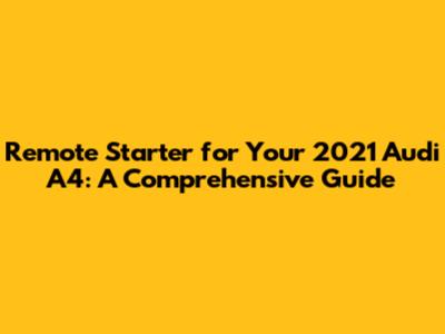 Remote Starter For Your 2021 Audi A4: A Comprehensive Guide