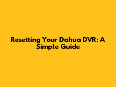 Resetting Your Dahua DVR: A Simple Guide