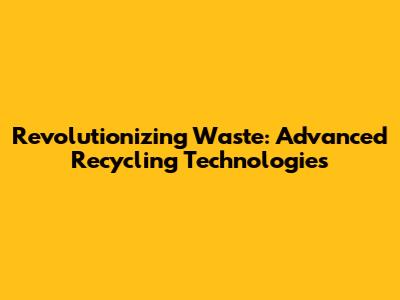 Revolutionizing Waste: Advanced Recycling Technologies