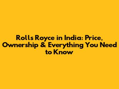 Rolls Royce In India: Price & Ownership
