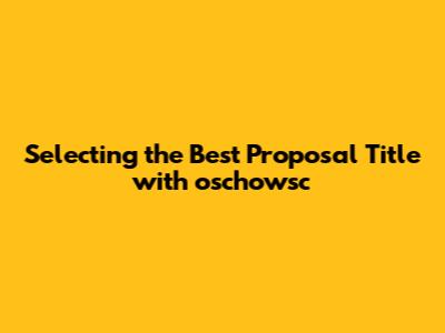 Step-by-Step Guide to Selecting a Proposal Title Using oschowsc