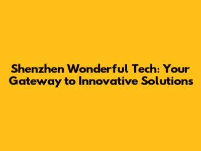 Shenzhen Wonderful Tech: Your Gateway To Innovative Solutions