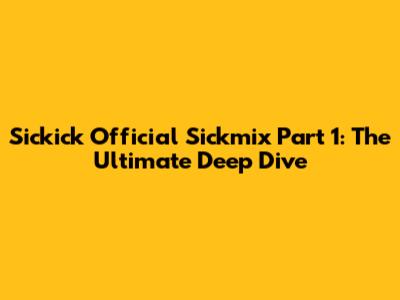 Sickick Official Sickmix Part 1: The Ultimate Deep Dive