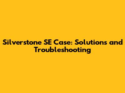 Silverstone SE Case: Solutions And Troubleshooting