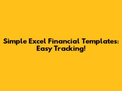 Simple Excel Financial Templates: Easy Tracking!