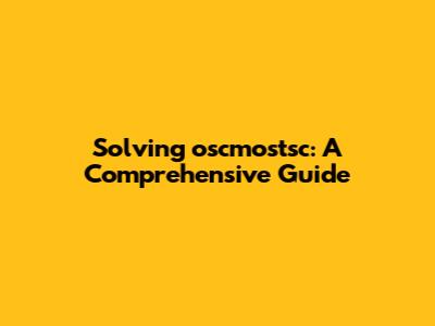 Solving Oscmostsc: A Comprehensive Guide