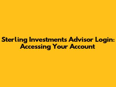 Sterling Investments Advisor Login: Accessing Your Account