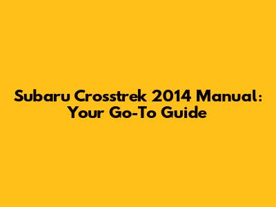 Subaru Crosstrek 2014 Manual: Your Go-To Guide