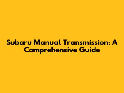 Subaru Manual Transmission: A Comprehensive Guide